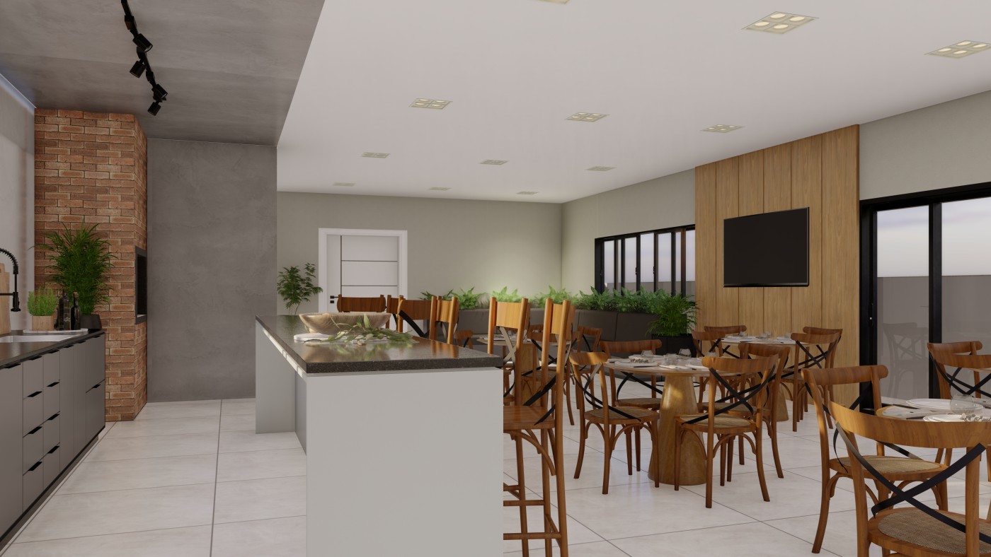 - sala e cozinha integradas;